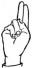 На ћирилици написано МИНА МЕДОЈЕВИЋ састоји се из 13 слова [?]. Исписано ћириличном једноручном азбуком за глувонеме: